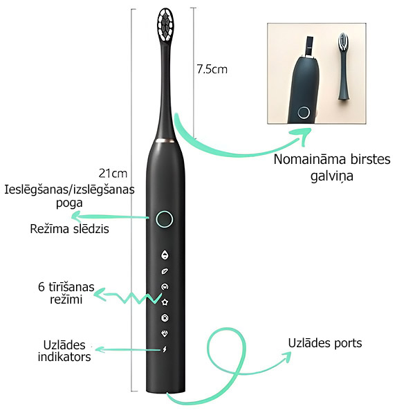 🦷 Iespēja iegādāties rezerves uzgaļus ilgākai lietošanai un pilnīgai higiēnai!