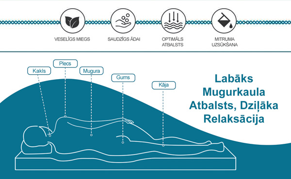 Uzlabota daudzzonu konstrukcija samazina slodzi uz gurniem, pleciem, muguru un locītavām, nodrošinot lielāku komfortu naktī